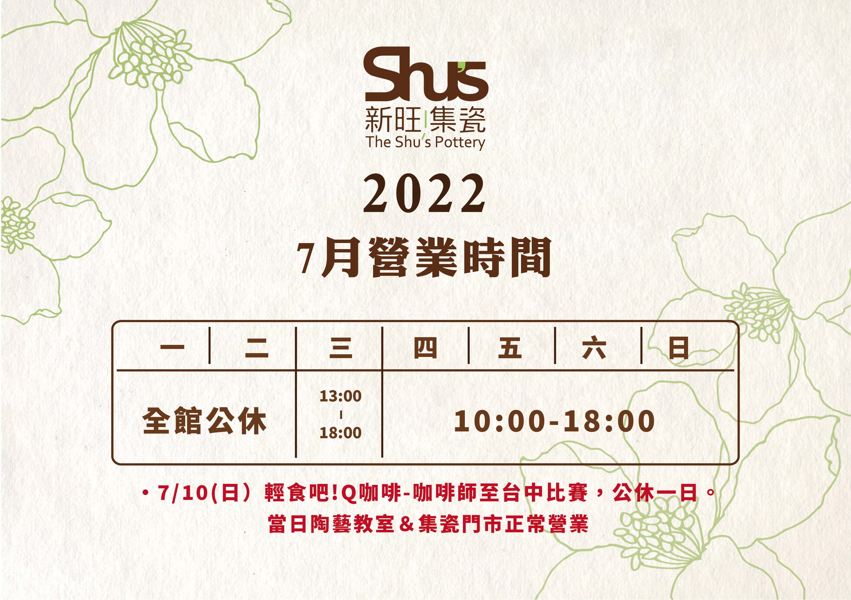新旺集瓷陶藝體驗課程也增加場次如下: