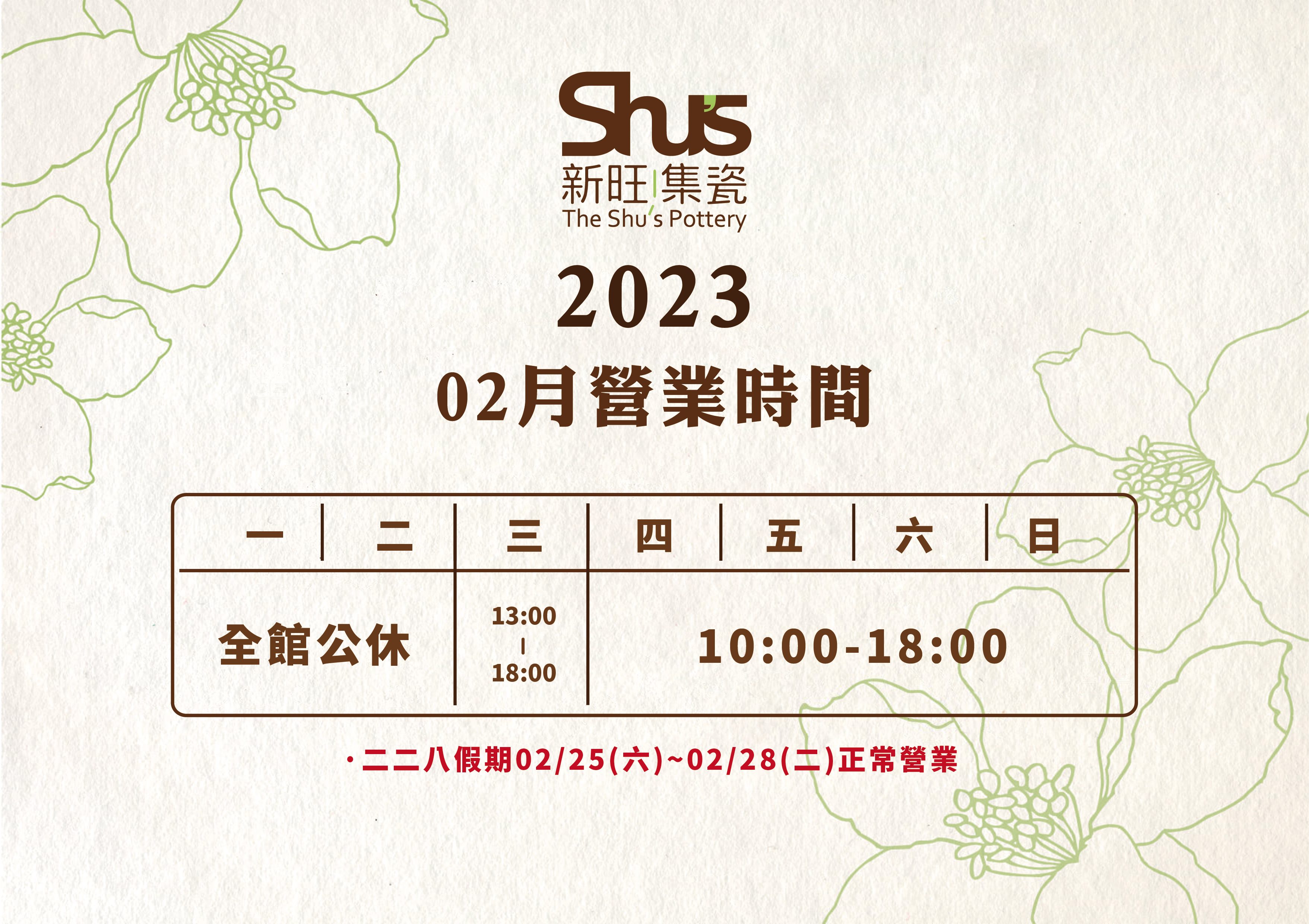 二二八假期 02/25(六)~02/28(二) 【10:00-18:00正常營業】