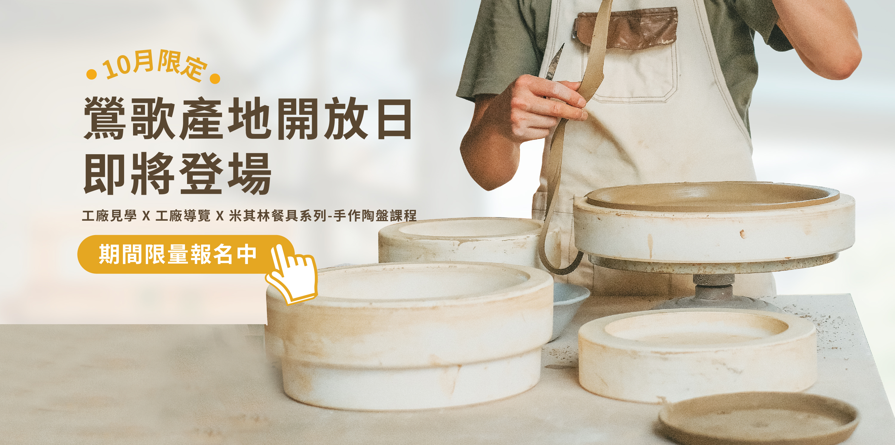 帶您領略陶瓷工廠的實境與製作過程,體驗及感受陶藝師傅究竟是如何製作米其林餐廳專用陶盤?
