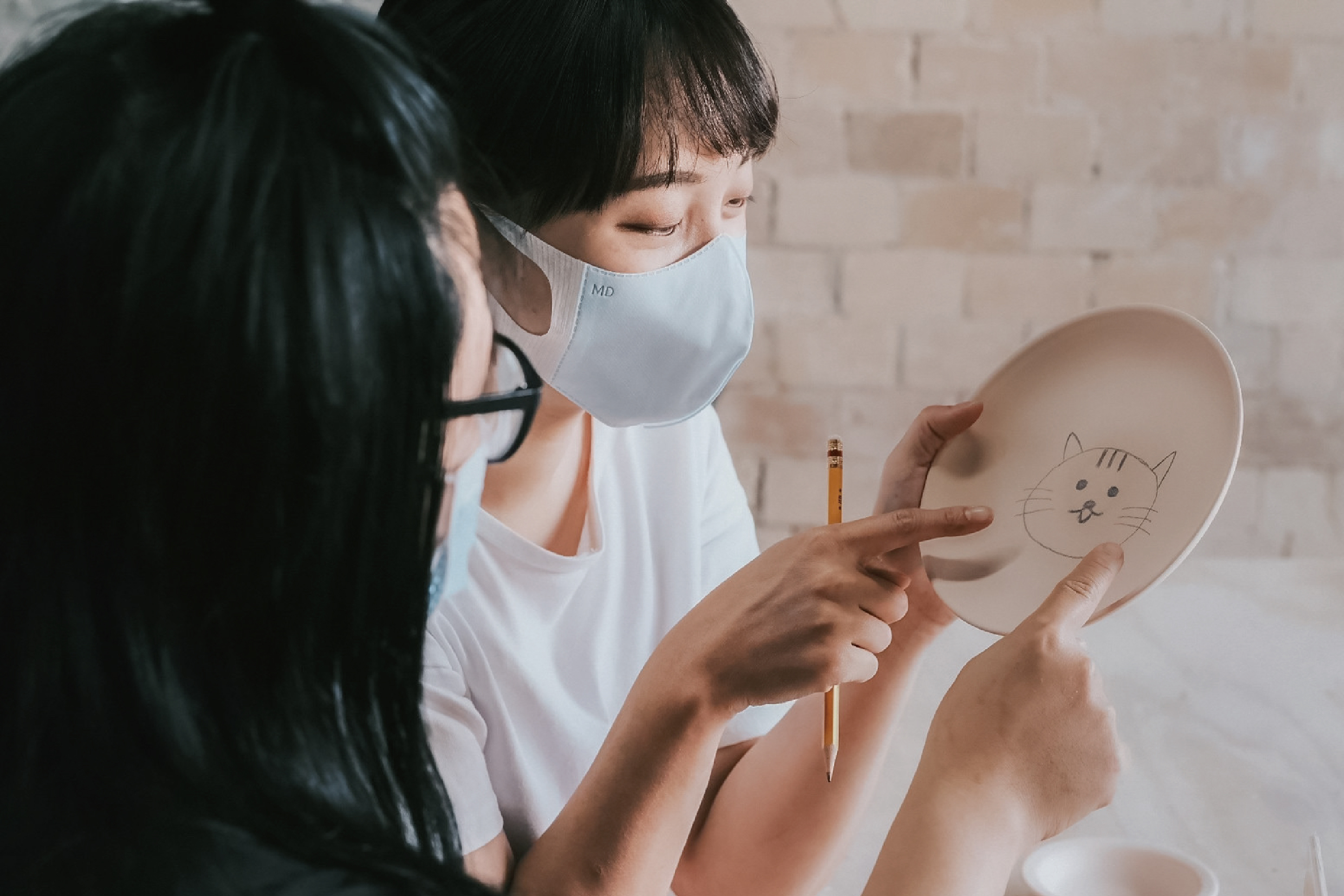 許多新旺集瓷的老客人,享受的是除了個人在陶藝創作上的療癒作用外,更多的是在這一個下午的手作時間,和孩子、和家人、和朋友一起共創美好器物的時光;因此,近期推出了能讓媽媽們優雅DIY,又可以享用美好下午茶時光的瓷盤貼花體驗課程。