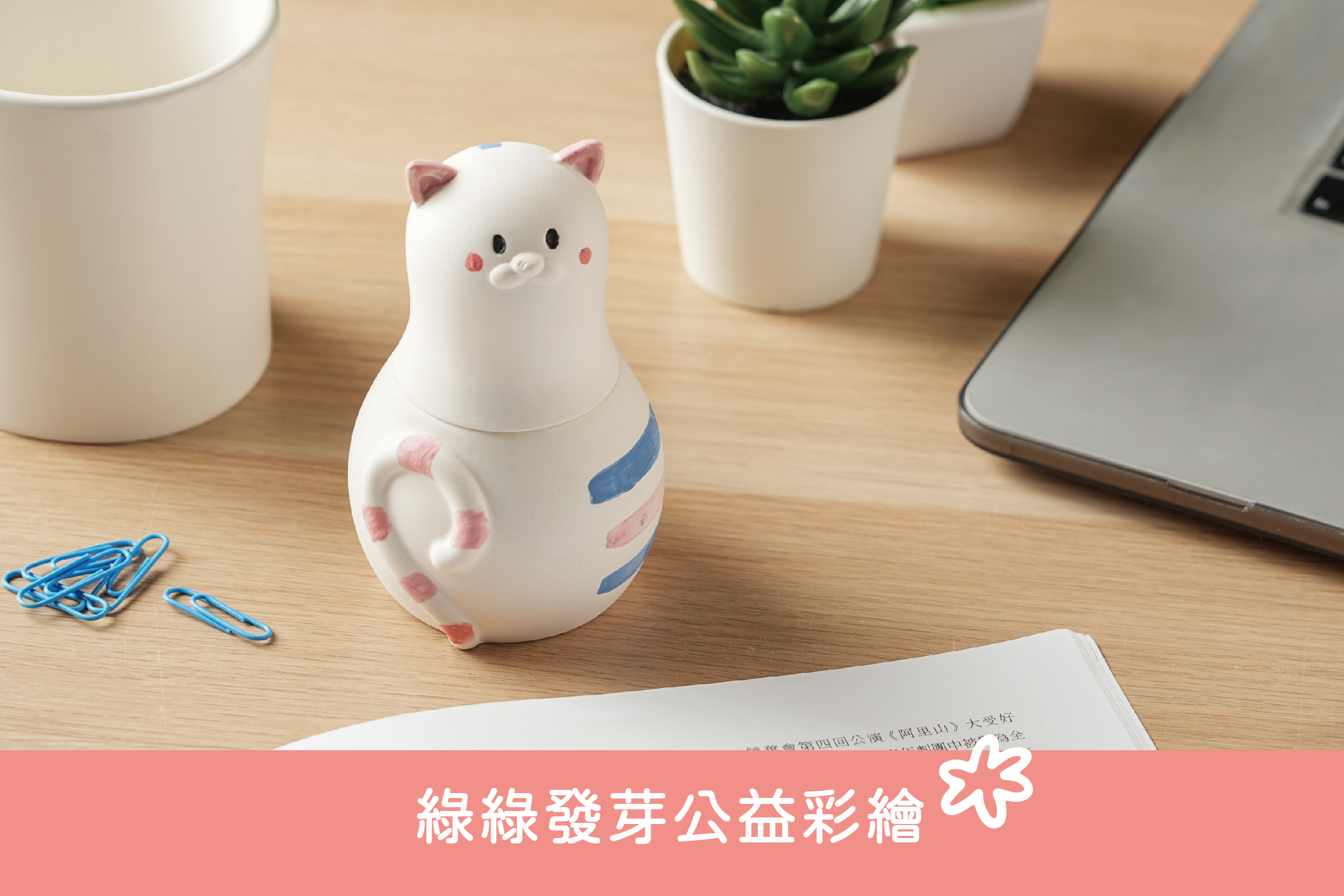 在陶瓷偶生產過程中,從造型設計、陶瓷開模、開發彩繪色料、指導特殊學員彩繪到最後量產燒完成的交貨包裝入盒,都有綠綠發芽的庇護學員們的協力參與。