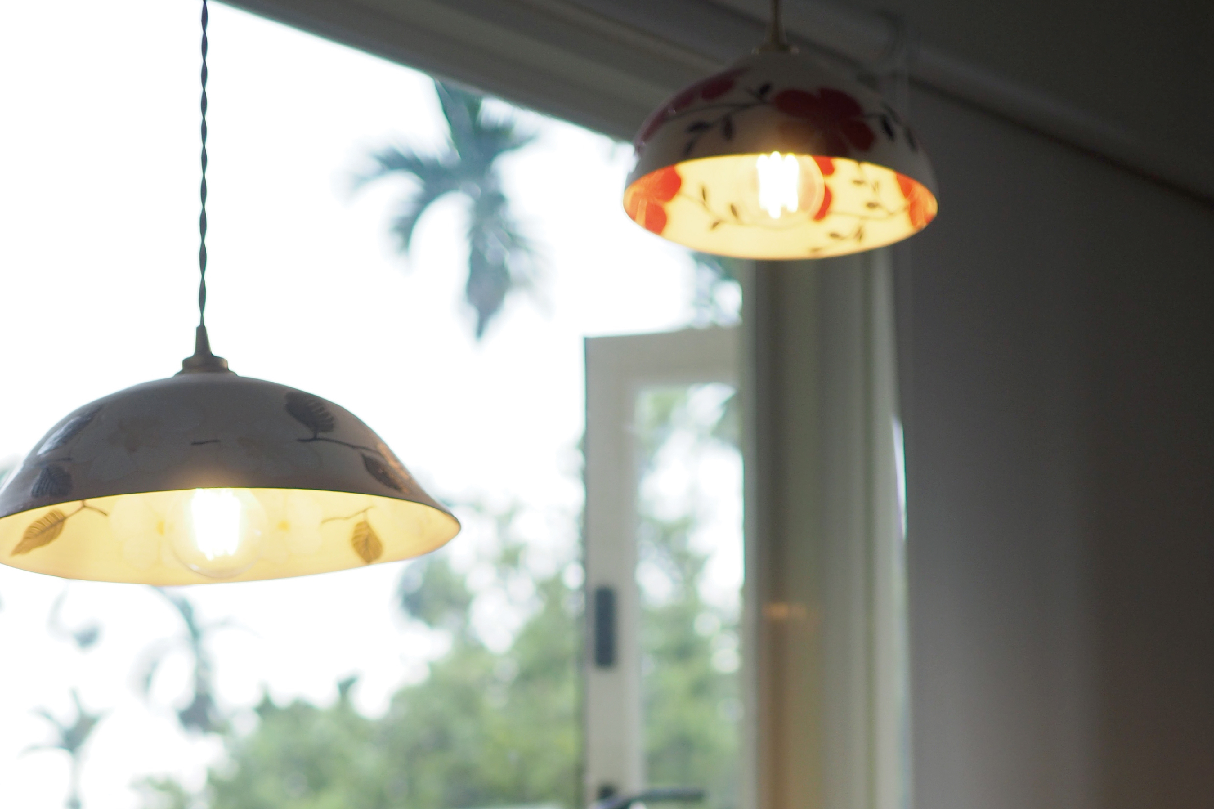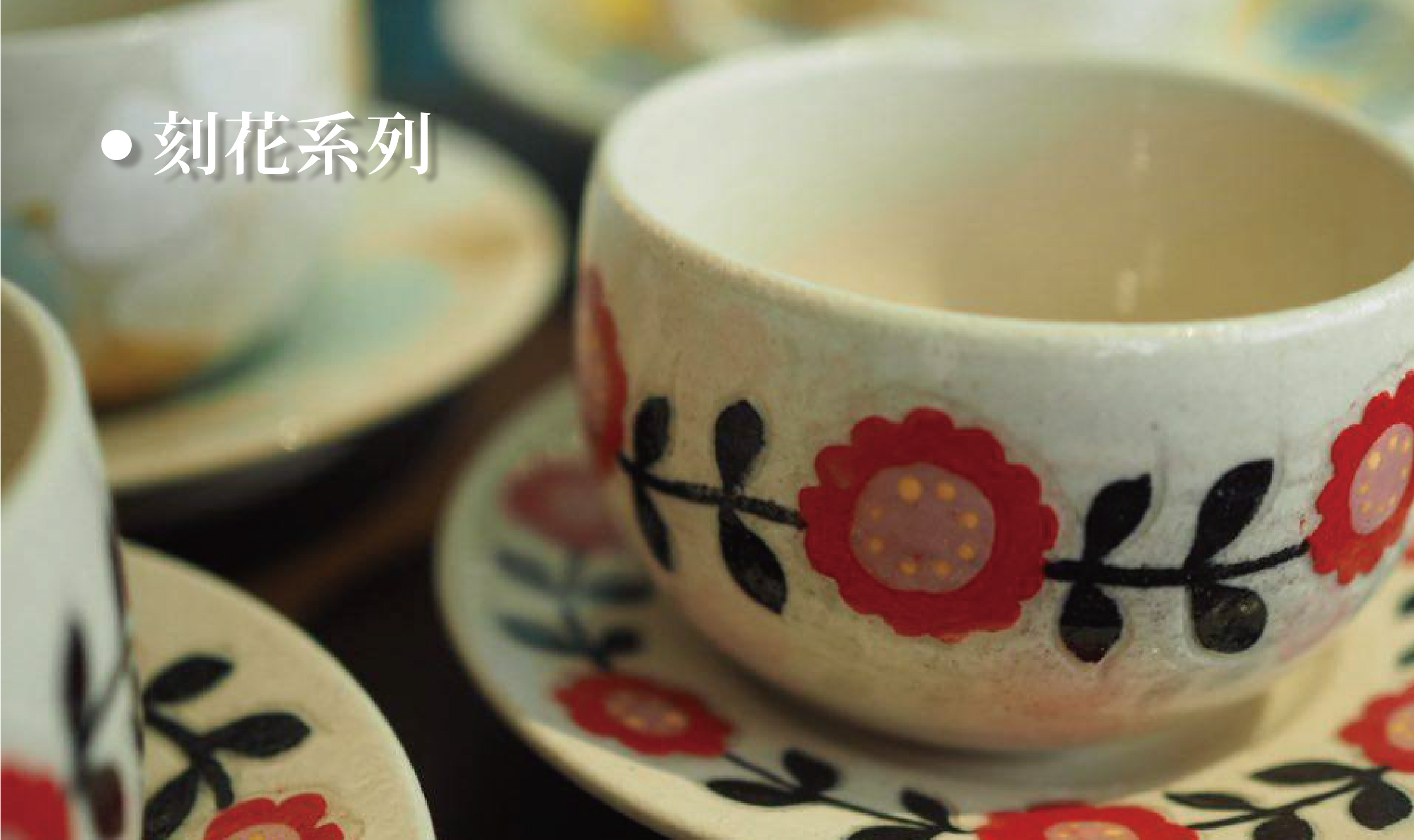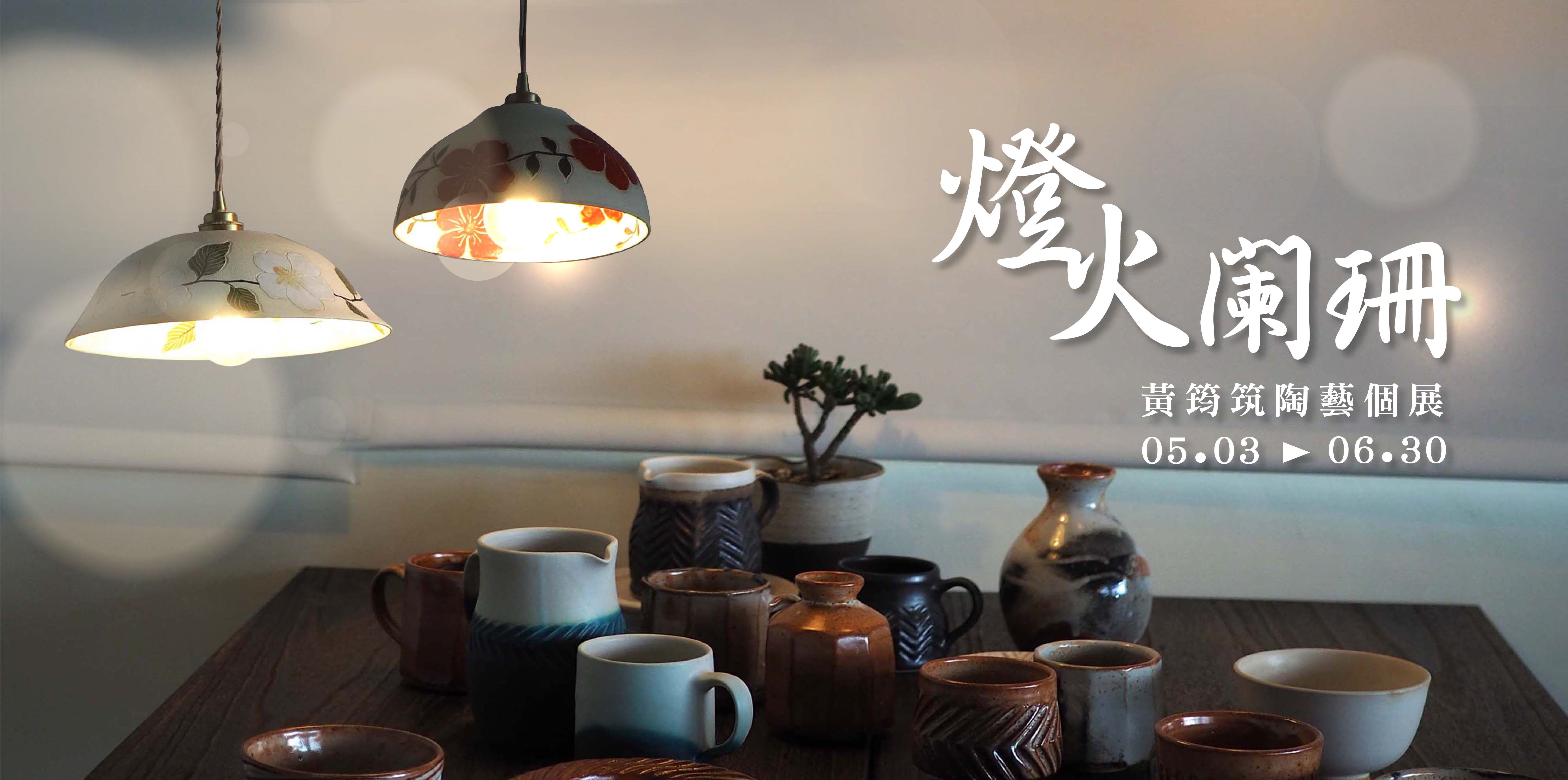 黃筠筑的創作以實用生活器為主,透過志野、刻花、霧面釉色等方式來表現,作品風格多元且充滿特色,深受許多陶藝愛好者的喜愛;而這次的展品除了生活器之外,還準備了刻花吊燈罩,呼應展覽的主題「燈火闌珊」更增添了幾分溫馨的感覺。
