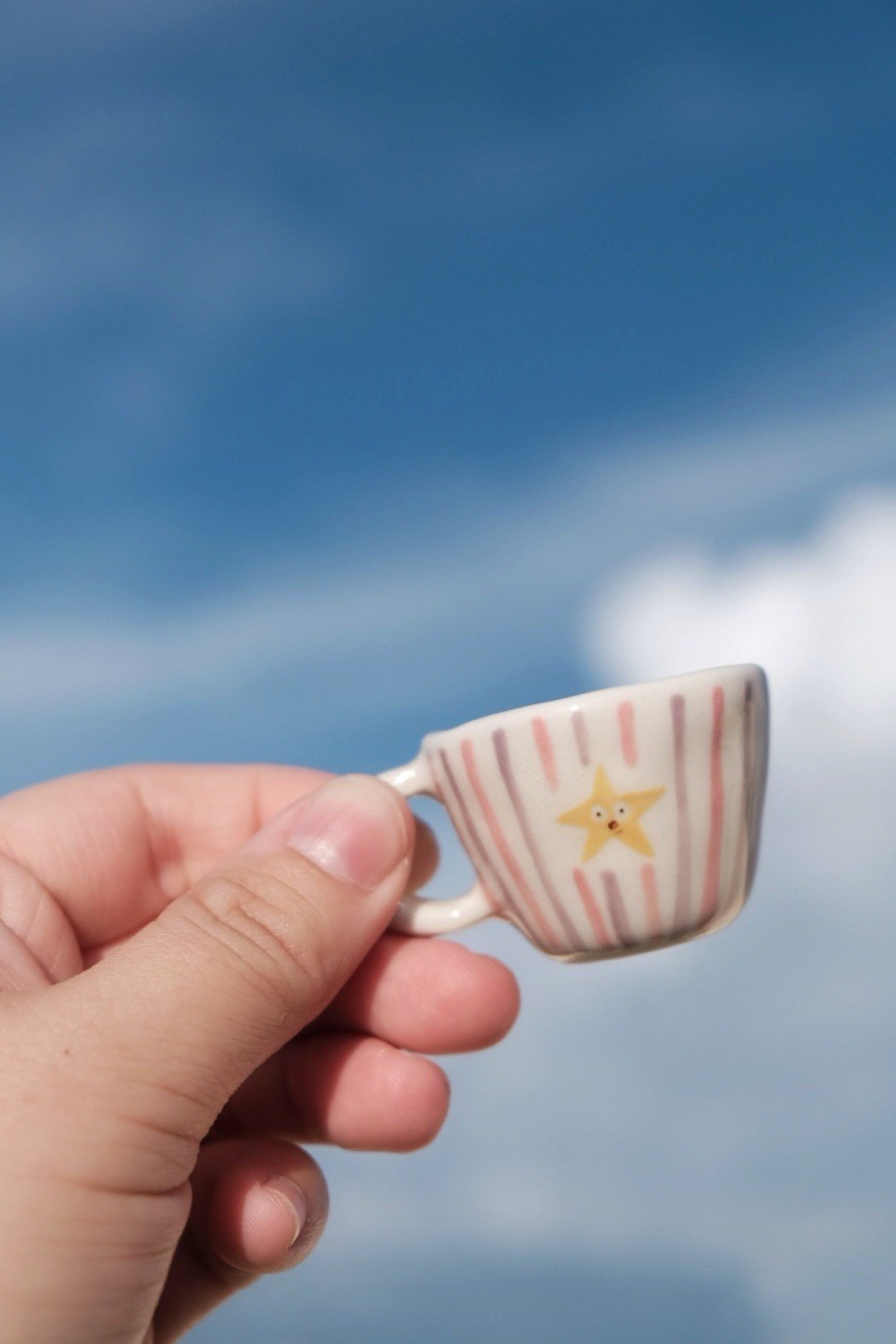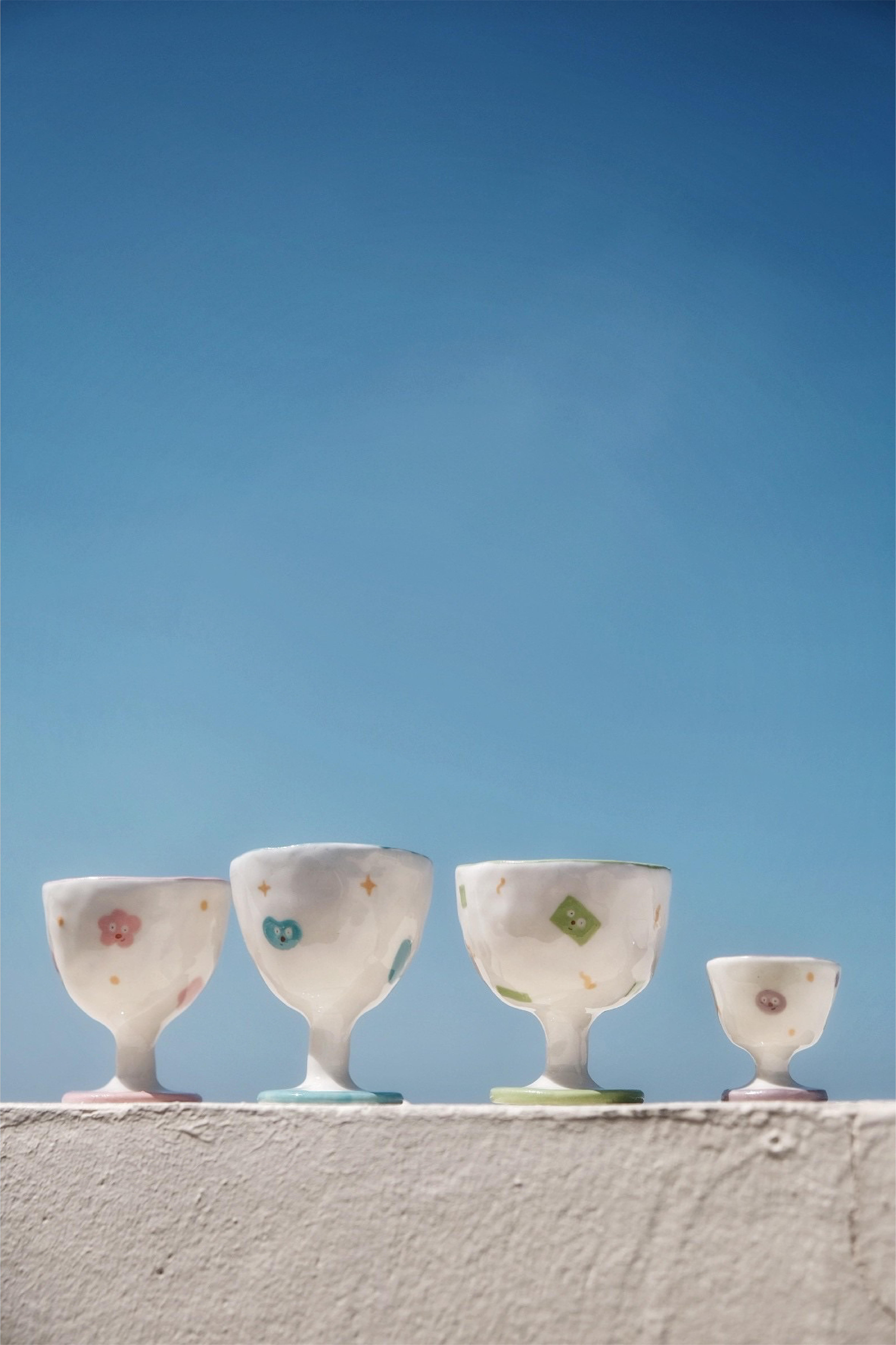 秉持著「快樂做陶」的理念,將生活點滴轉化為靈感,以手捏陶器搭配手繪插畫,賦予作品獨特的生命力。