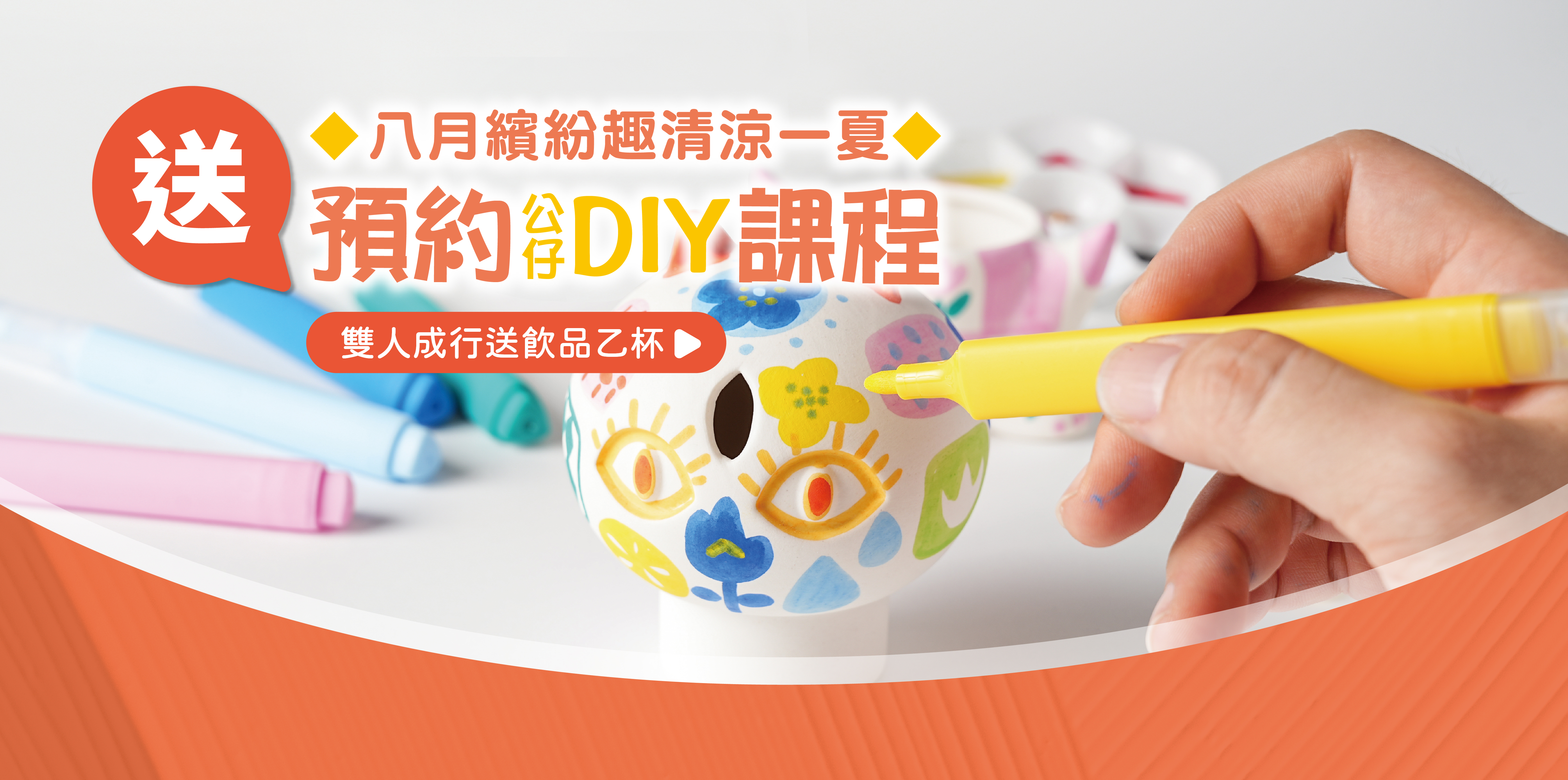 單筆訂單預約逗一起彩繪DIY公仔課程 兩名,立即送一杯消暑飲品~讓你清涼一夏~